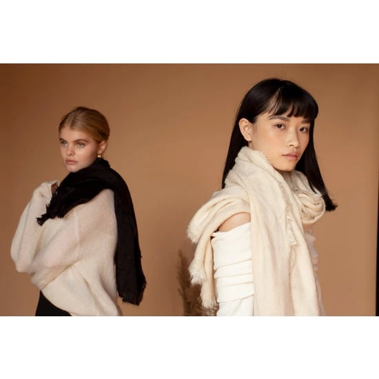 A lovely cosy oversized scarf made from recycled plastic bottles, repurposing our planet’s waste and turning it into a beautiful cosy new scarf. Super soft with frayed edge detail.