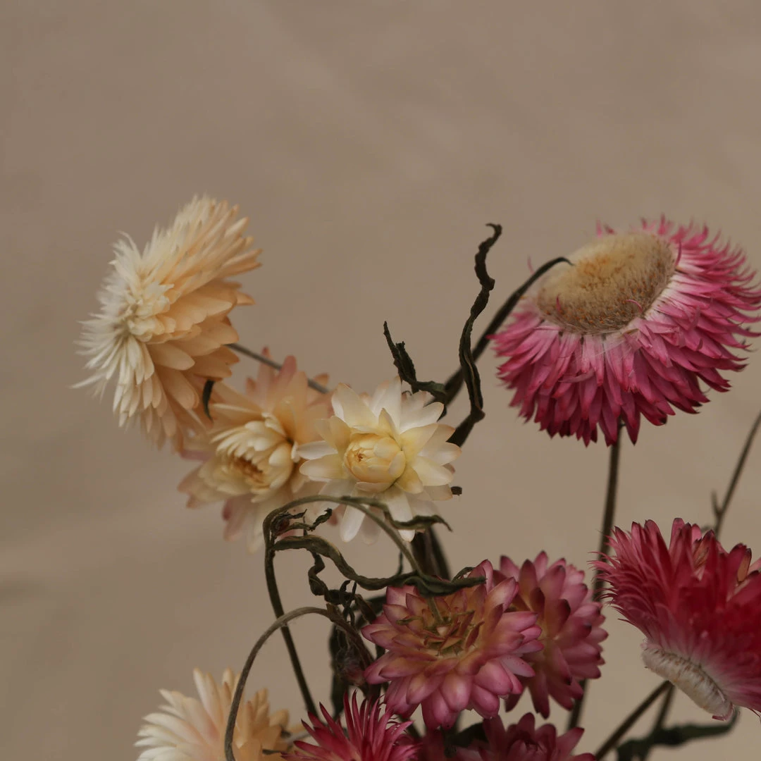 Pretty Dried Helichrysums flowers In mixed summery colours.