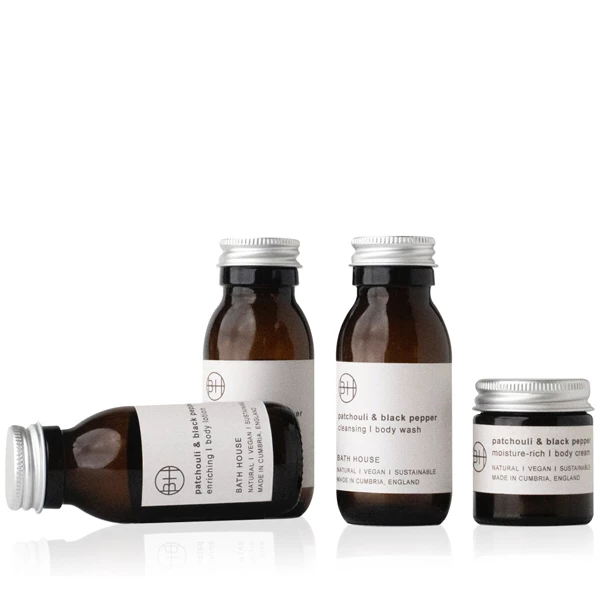 Travel size of the bestselling bathing and bodycare products, all delicately scented with the rich, warm sensual scent of Patchouli & Black Pepper. All enriched with beneficial extracts and plant oils. These mini glass bottles are ideal for travel, or as a discovery taster kit for gifting – purchase the refill pouches to top up these bottles time and time again.