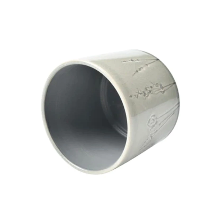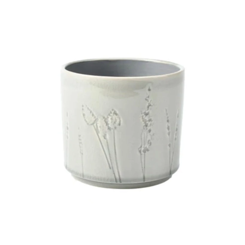 This charming design picks up on the ongoing trend for bringing the outdoors into the home and for all things natural. It features debossed impressions of grasses and flowers in a loose, sketchy style, giving a delightful artisanal look. A go-anywhere soft grey crackle glaze pools in the design, building depth of colour to highlight the delicate silhouettes.