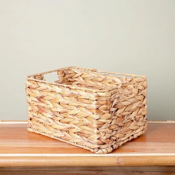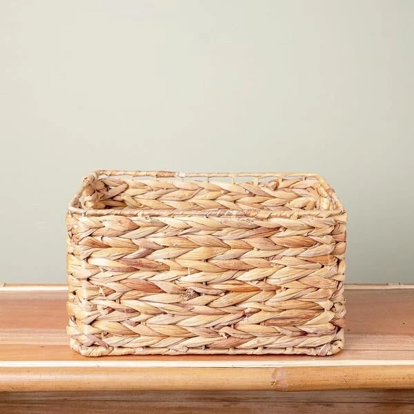 A versatile and attractive, woven water hyacinth basket which can be used for storing accessories, cleaning products or toys in a kids bedroom. Water hyacinth is a quick-growing plant that’s capable of doubling in size every two weeks, making it a renewable raw material. Harvested regularly, it keeps waterways clear and aquatic environments oxygen rich.