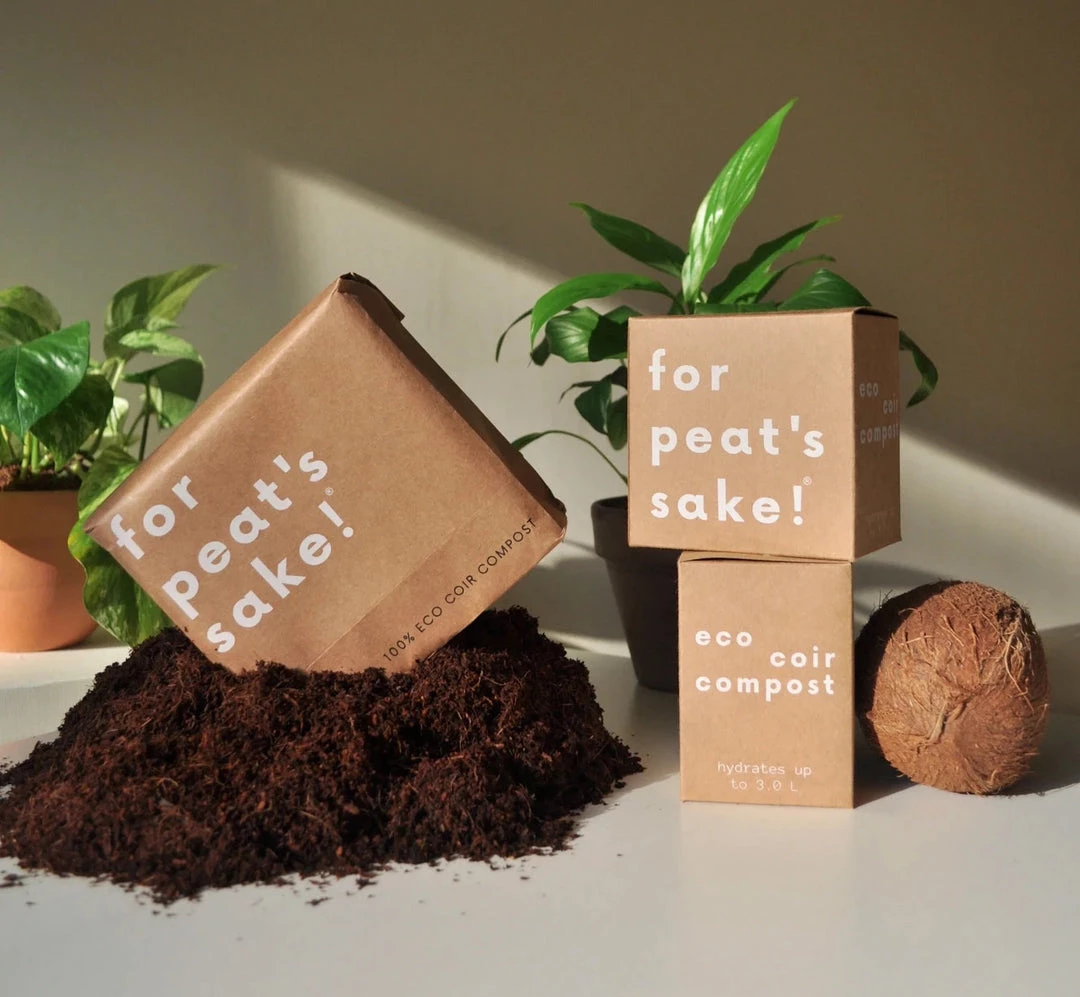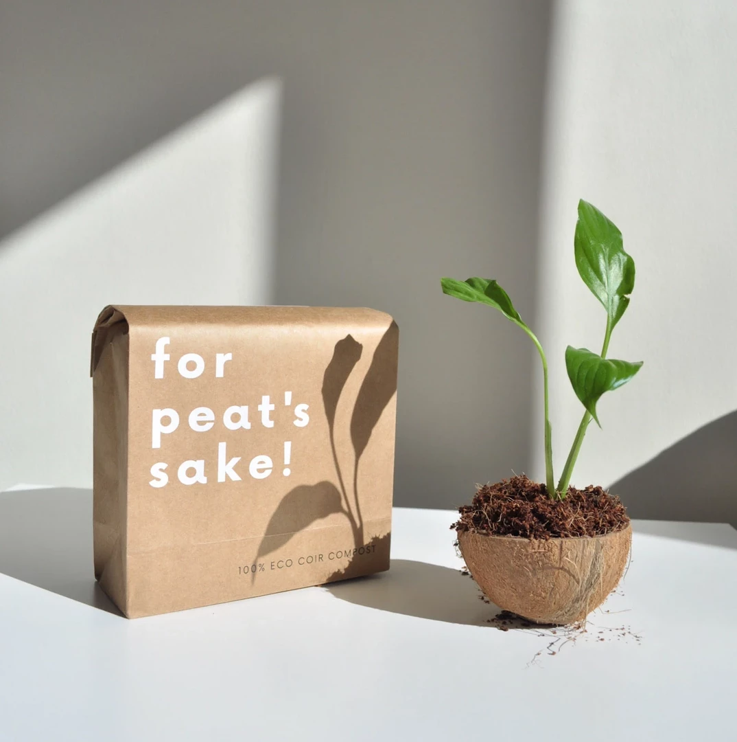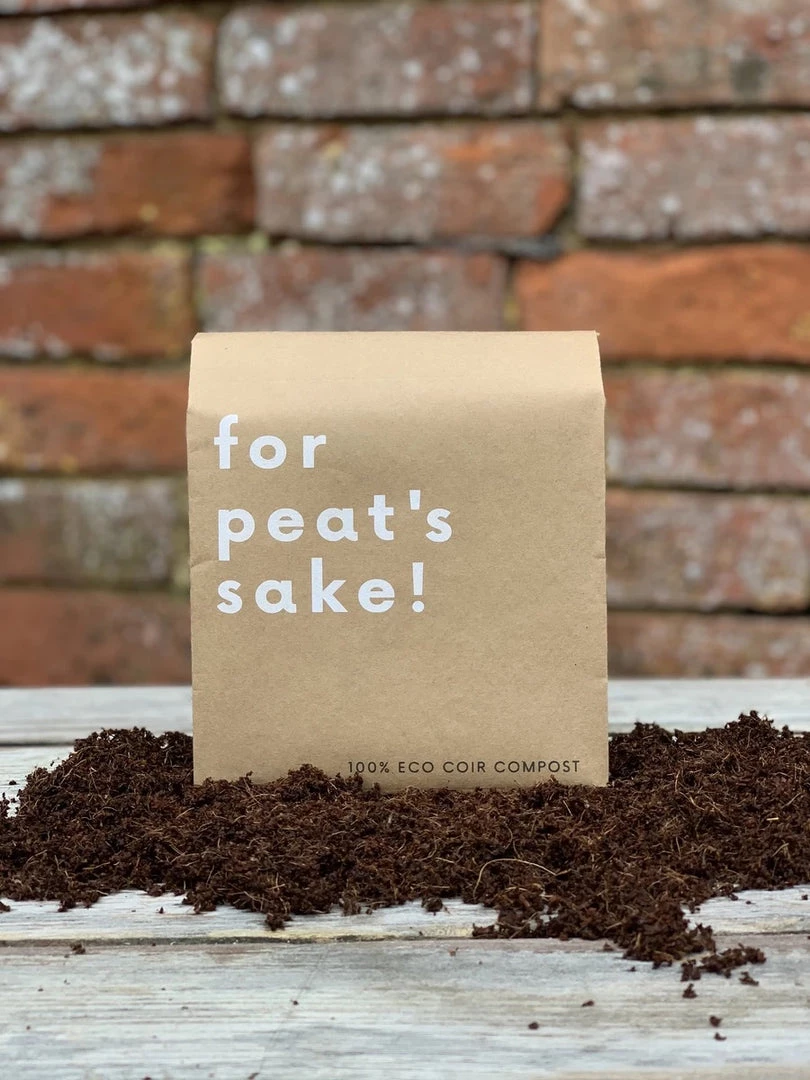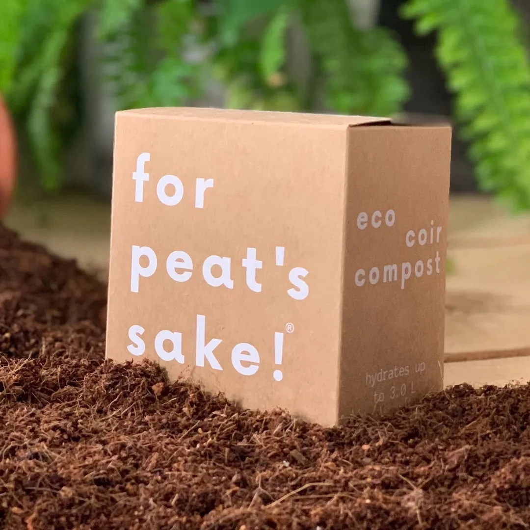 The ‘For Peat’s Sake’ block is dehydrated coconut coir. Once water is added, the coir will hydrate and grow to approximately 11.5 Litres! This growing medium is 100% peat-free and can be used to support plants in pots, including house plants and vegetables.