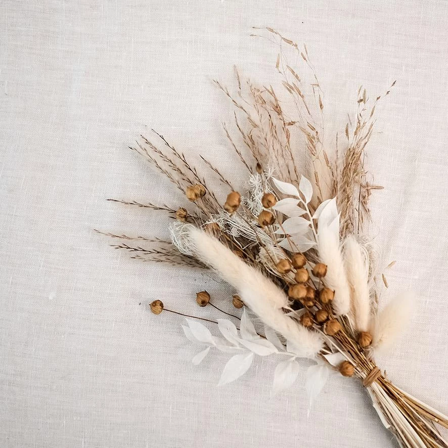 These cute mini posies are handmade in the shop and lovingly wrapped in Brown paper and twine. We use a mixed selection of Dried flower stems and foliage from our current collection to create an elegant and unique arrangement. A perfect lasting natural floral display that will add colour and texture to any space.