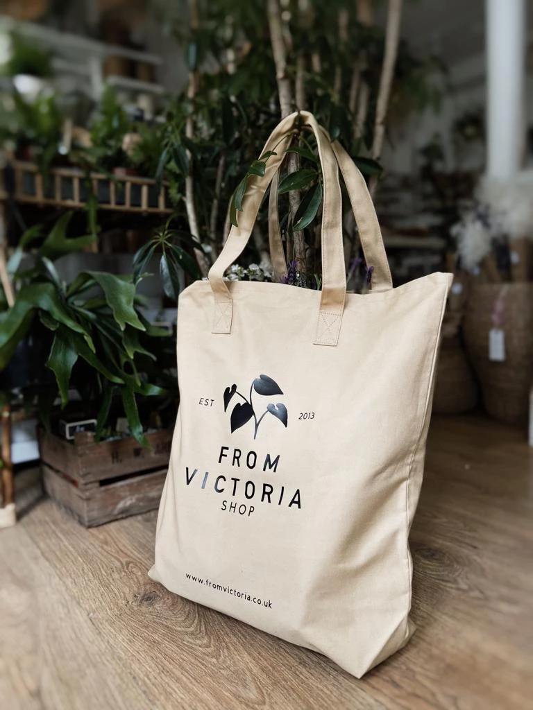 Our limited edition luxury beige canvas tote bag in 100% cotton. This large cotton canvas tote bag has extra capacity as well as strong and soft handles that fit perfectly over the shoulder.