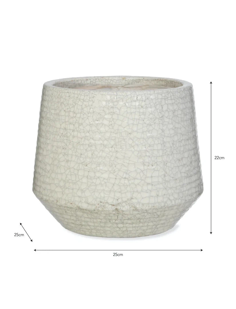Combining the distinctive Ravello crackle glaze with a horizontal linear design, the Ravello Ridged Pot tapers at the base for a contemporary effect. Pot with tall vibrant houseplants to create a striking display.