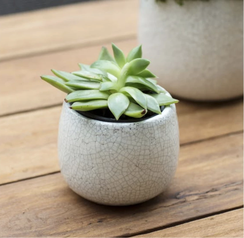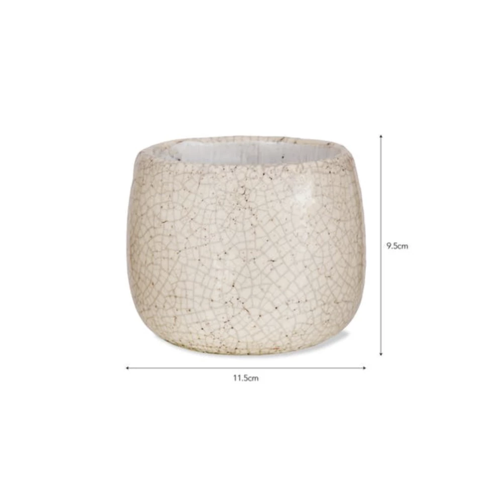 Featuring a distinct and rustic glaze and crafted in Ceramic. The rounded indoor pot is perfect to place on a shelf, console table or windowsill filled with fresh herbs or succulents.
