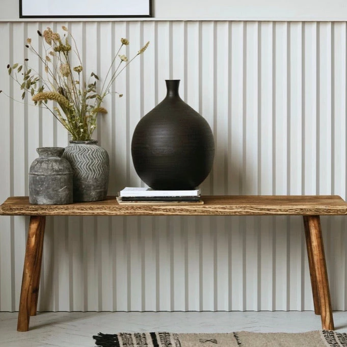 A wooden bench is a wonderful solution for your extra seating needs. This long bench is called Nadi and is designed by House Doctor. Made of paulownia wood, the characteristics of the wood shine through and add a natural touch to your home décor. Use it anywhere in your home as an extra place to sit, or as an alternative to a side board for displaying your favourite decorative objects. From the hallway to the kitchen and living room, this bench adds warmth and contributes to a relaxing atmosphere. Also available in a shorter version. The wood is unlacquered. Over time, the bench might start to show traces of typical wear and tear in the shape of spots and marks in darker or lighter shades. This, however, is a natural part of the design.