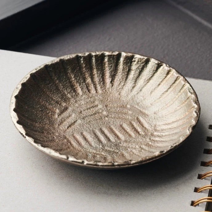 The small Tribes tray from House Doctor is a perfect example of a handmade item with unique details that make a difference. It is made of aluminium and has been given a golden brass finish. Grooves have been added to the surface by hand, creating a simple but fine pattern. The details are somewhat uneven which is the charm of homemade items and a deliberate part of the design. Place a pillar candle on it or use the tray as part of a decorative display together with glass vases and candlesticks in various materials and sizes. Note: The finish of this product may vary.