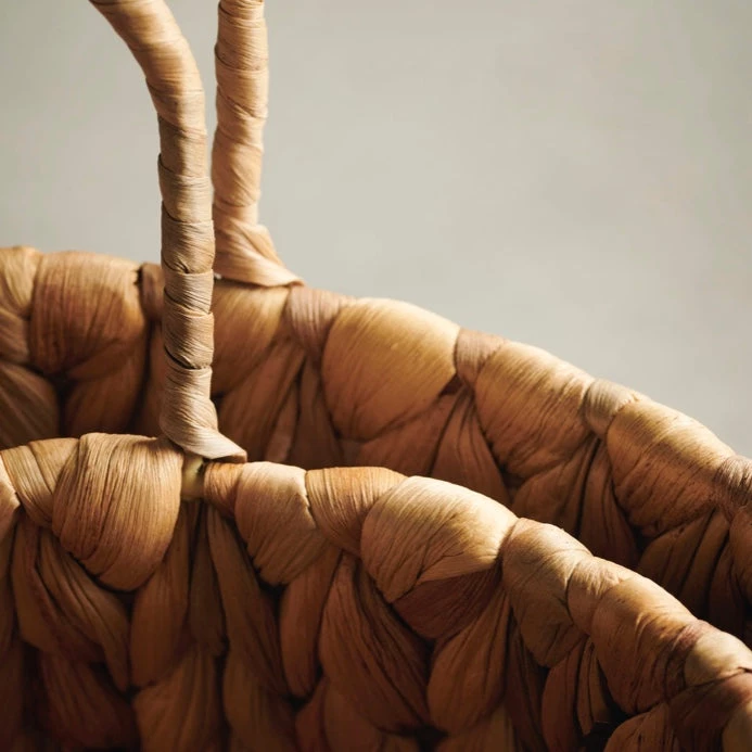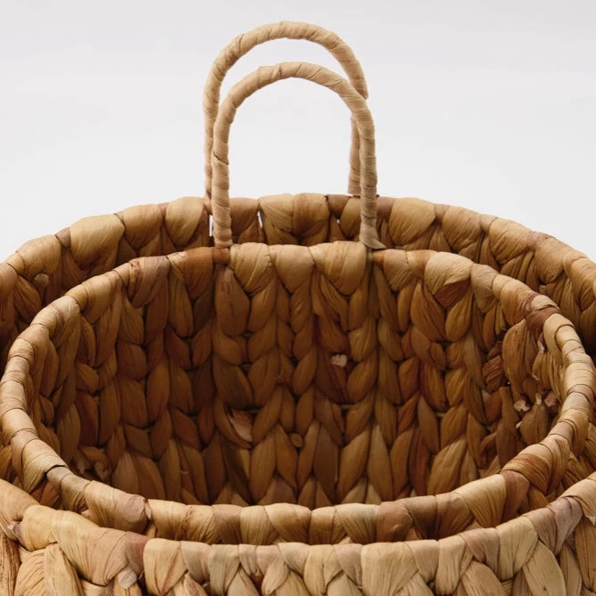 Hang the baskets from hooks in the bathroom as convenient and elegant storage of store toilet paper, towels and other items. The wide, woven pattern and natural material softens tiles, marble and metals. Let hyacinth be an accent material in the bathroom, living room and kitchen to form a cohesive look in your home décor.