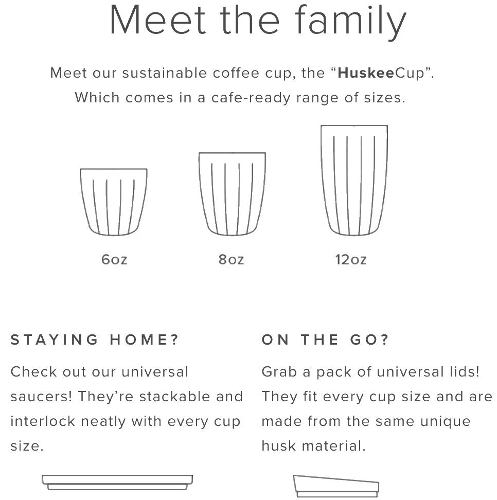 HuskeeCups are the UK’s favourite reusable coffee cups featuring a sophisticated design made for cafes, home users and on-the-go coffee drinkers. We have created innovative designer reusable coffee cups that not only look beautiful but are durable, BPA free and most importantly sustainably made using waste husk left over from the production of coffee. A HuskeeCup is sure to change your morning routine for the better whilst reducing the environmental impact of single-use coffee cups.