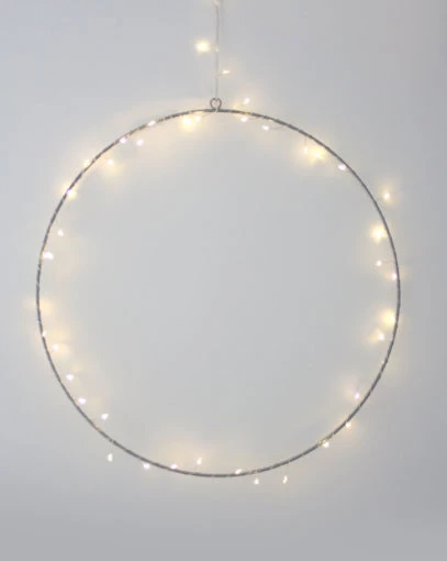 Create a beautiful hanging decoration with this silver ring decoration. Can be used in a number of ways by weaveing foliage suitable for the time of year around the ring or you can create your own winter wreath using eucalpytus sprigs and wire led twinkling lights through the foliage. They can also just be hung simply together with christmas bauble in the centre. The options are endless.