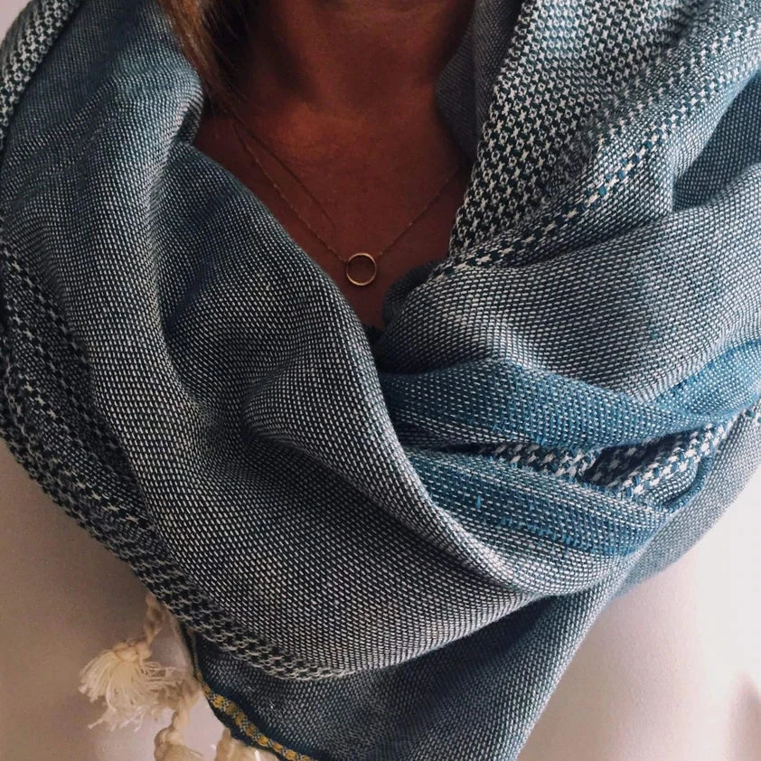 Finely loomed from natural cotton, in a stylish and contemporary blanket and chain weave, the Ekin is a beautiful, double layered, yet lightweight and timeless scarf, with a delicate antique linen appeal.
