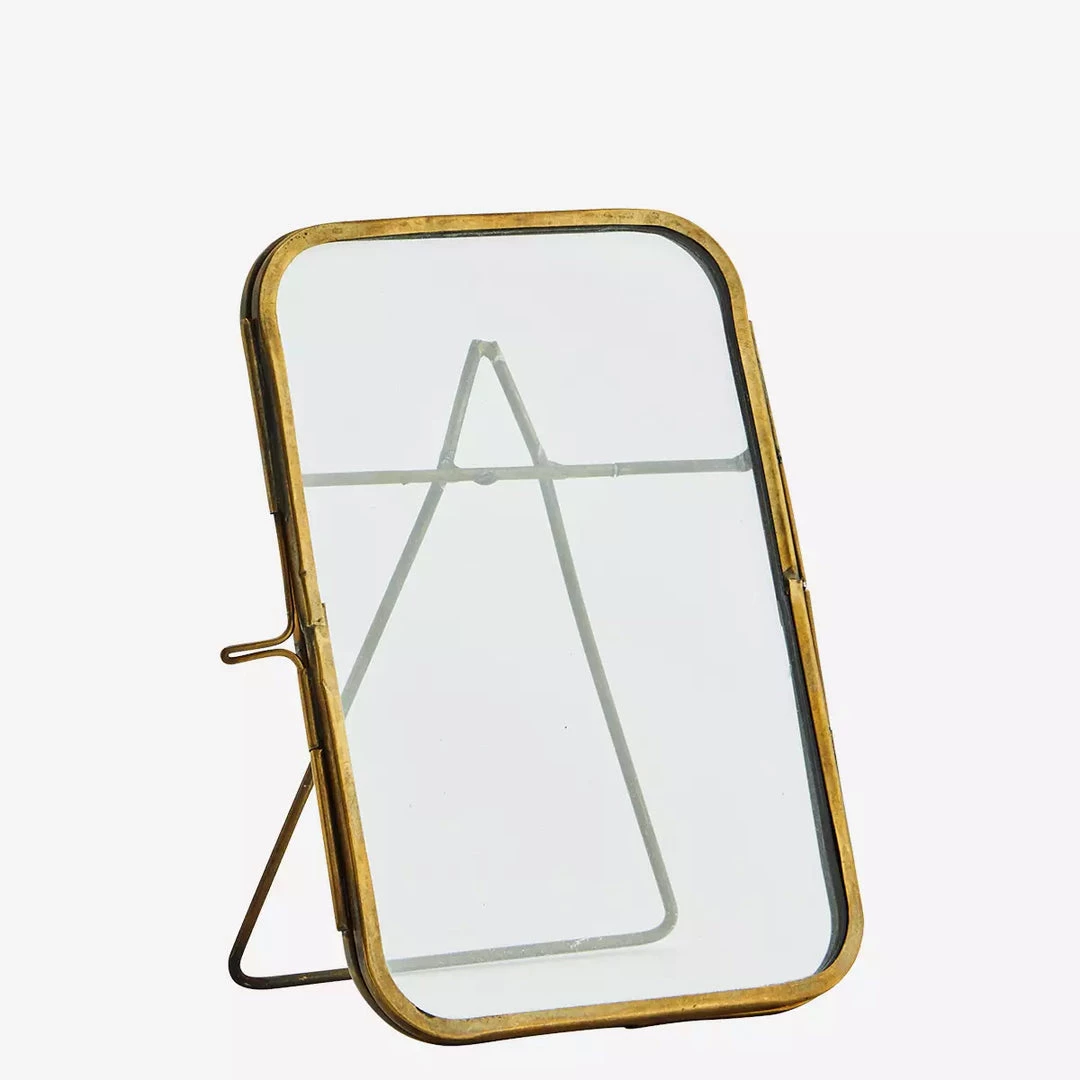 Beautiful freestanding brass frames with curved corners perfect for your photos, pressed flowers and framing mementoes.