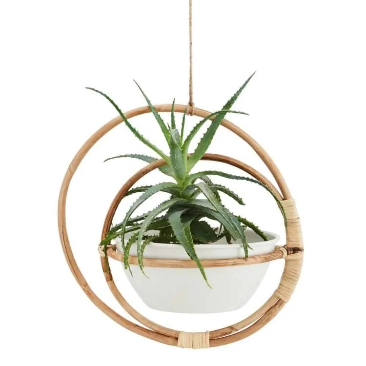 Madam Stoltz Bamboo Cane Hanging Planter With Metal Pot Summer Collection