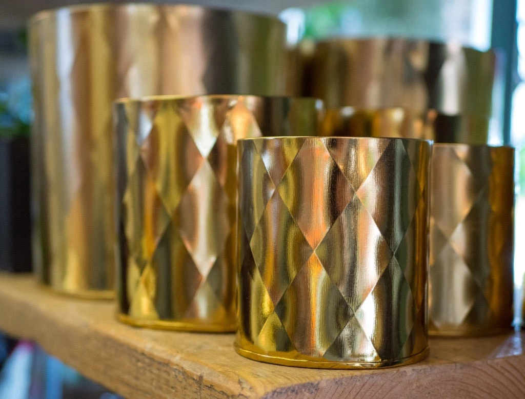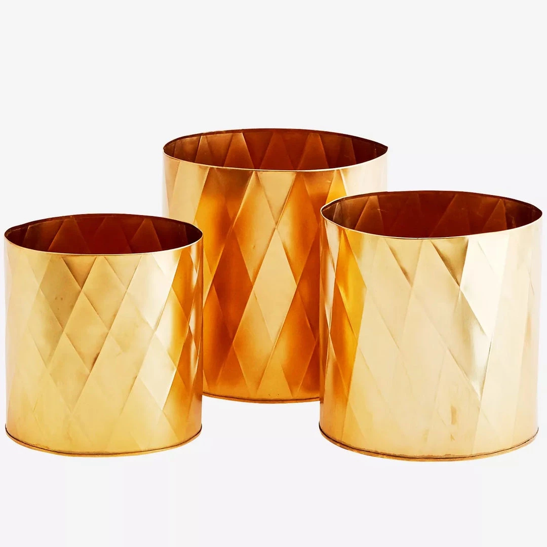 This gold-coloured planter brings a touch of glamour to indoor gardening.