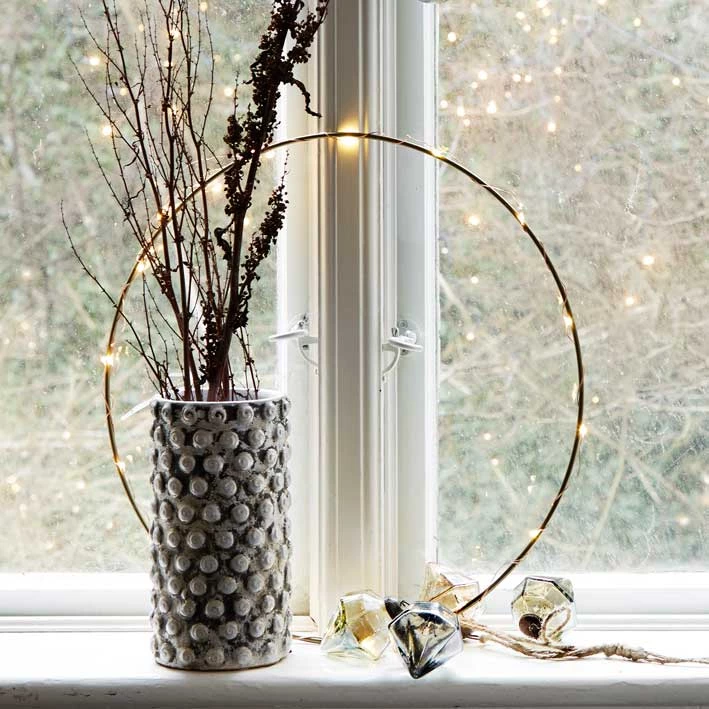 Create a beautiful hanging decoration with these brass ring decorations. Can be used in a number of ways by weaveing foliage suitable for the time of year around the ring or you can create your own winter wreath using eucalpytus sprigs and wire led twinkling lights through the foliage. They can also just be hung simply together with christmas bauble in the centre. The options are endless.