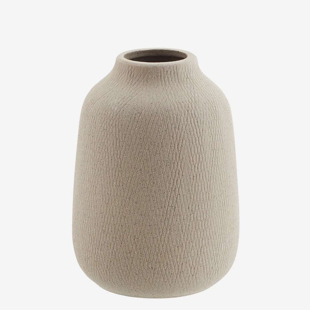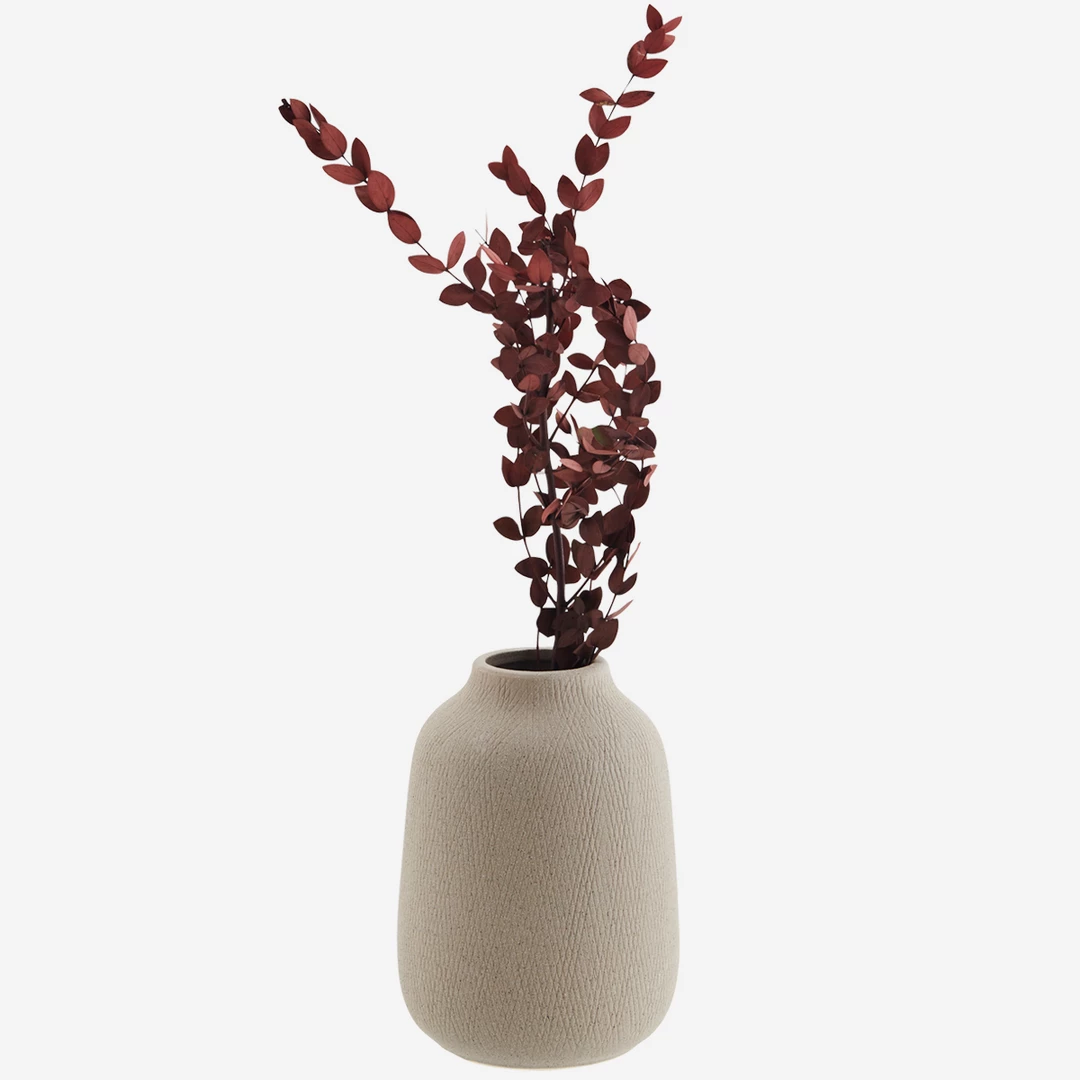 Lovely ceramic textured vase in a matt grey colour by Madam Stoltz. Using dry flowers is recommended as the base of the vase may get damp.