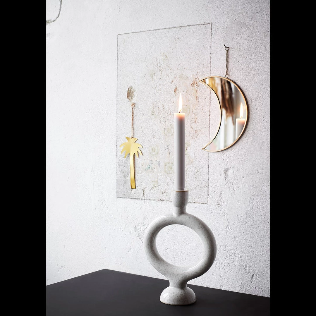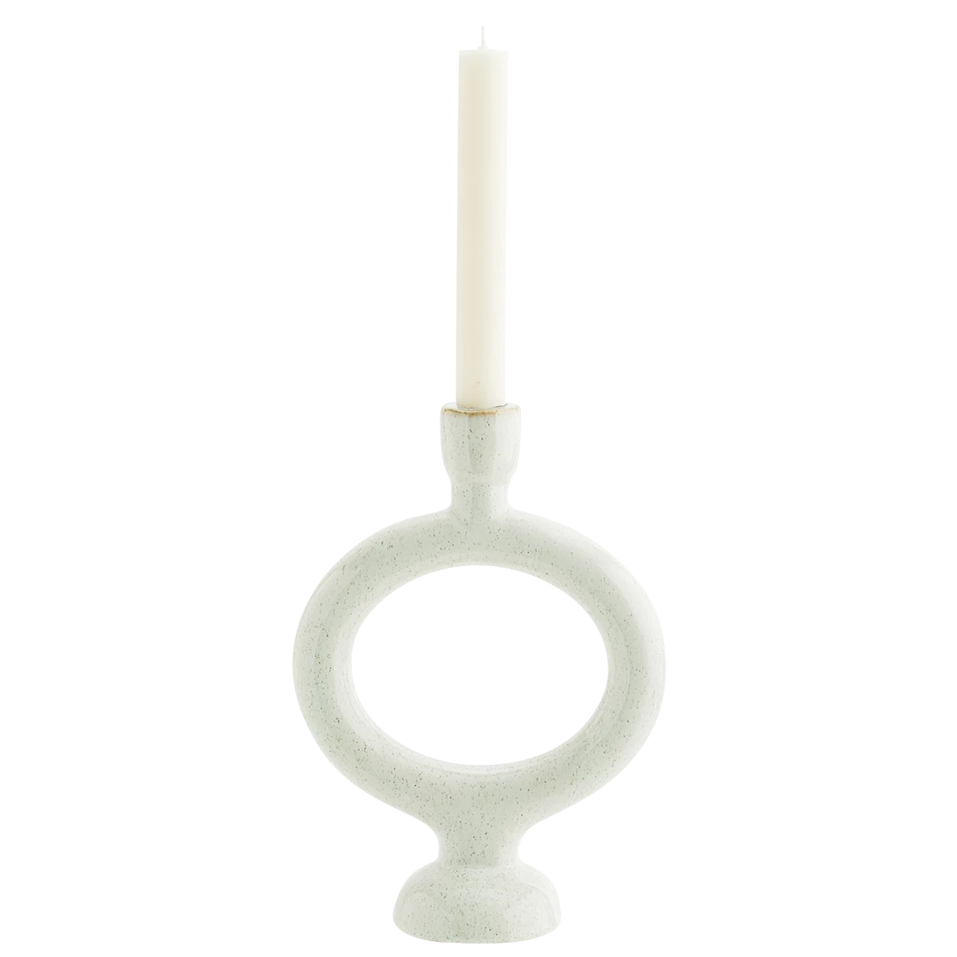 A unique off white toned candlestick holder. A perfect statement piece on a side board or dining table that matches perfectly with our dinner candle selection.