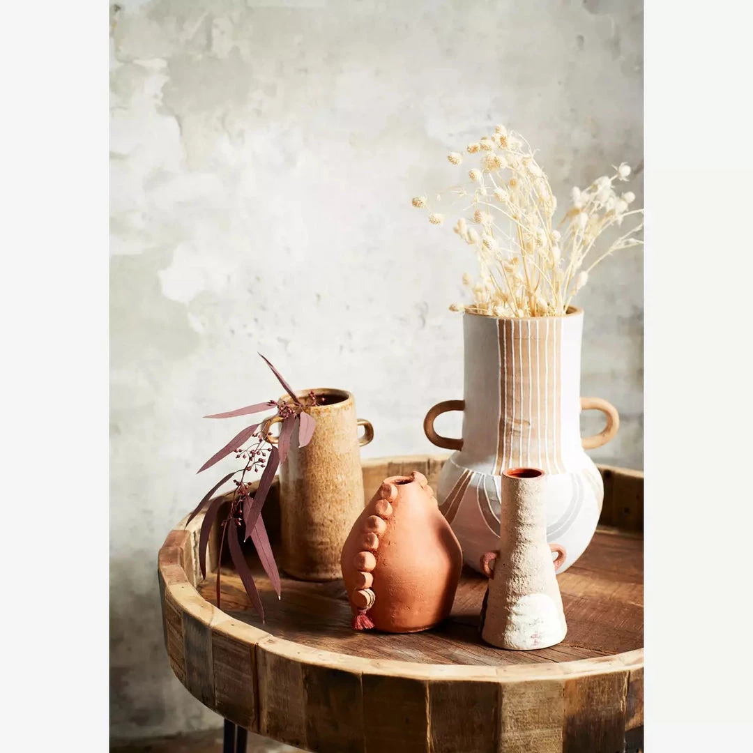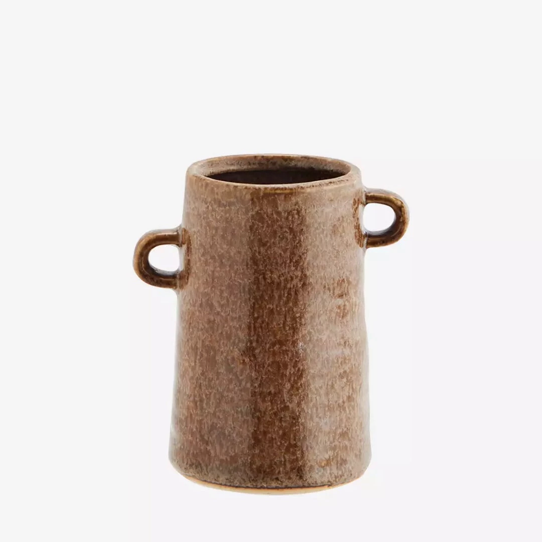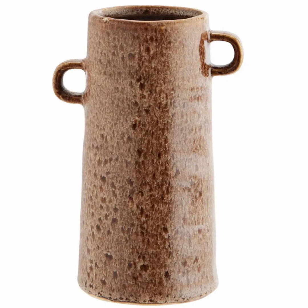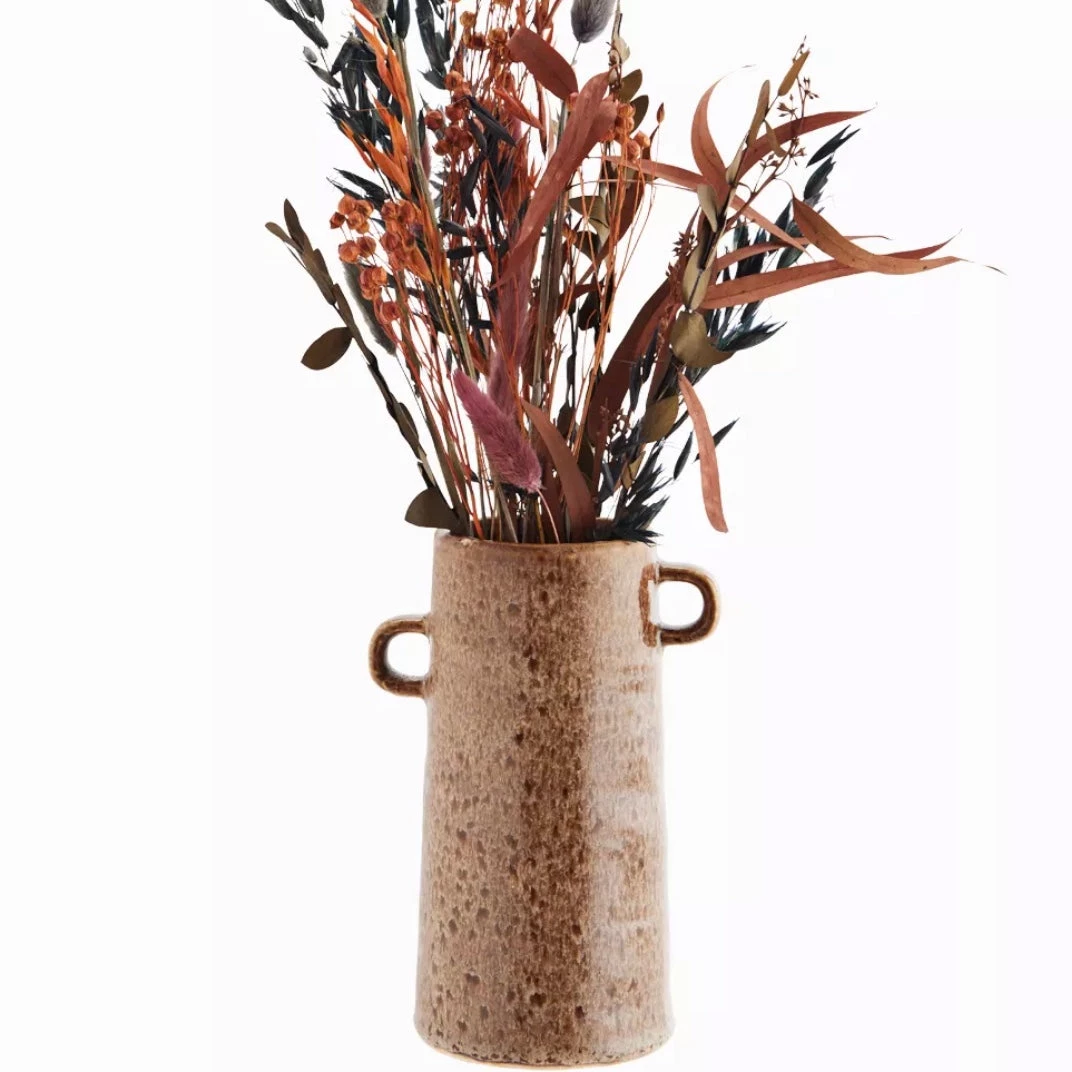 We’re loving the latest range of vases by Madam stoltz. This lovely light brown colour vase has a textured surface and asymmetrical handles. We think it looks lovely styled on its own or with a bunch of flowers. Available in two sizes.