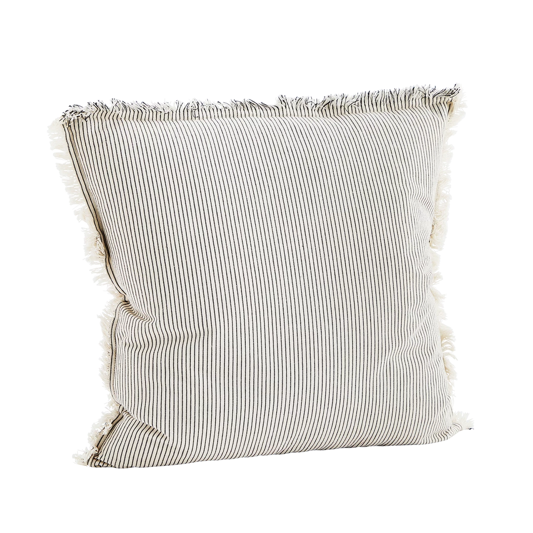 Cotton cushion with stripe pattern off white and black with fringing from Madam Stoltz.