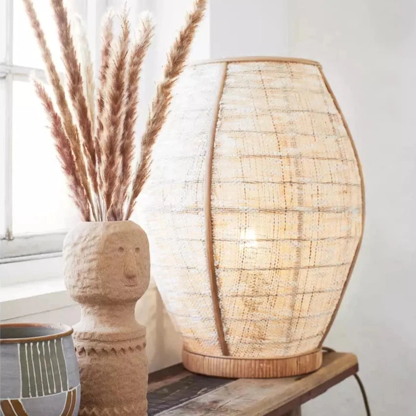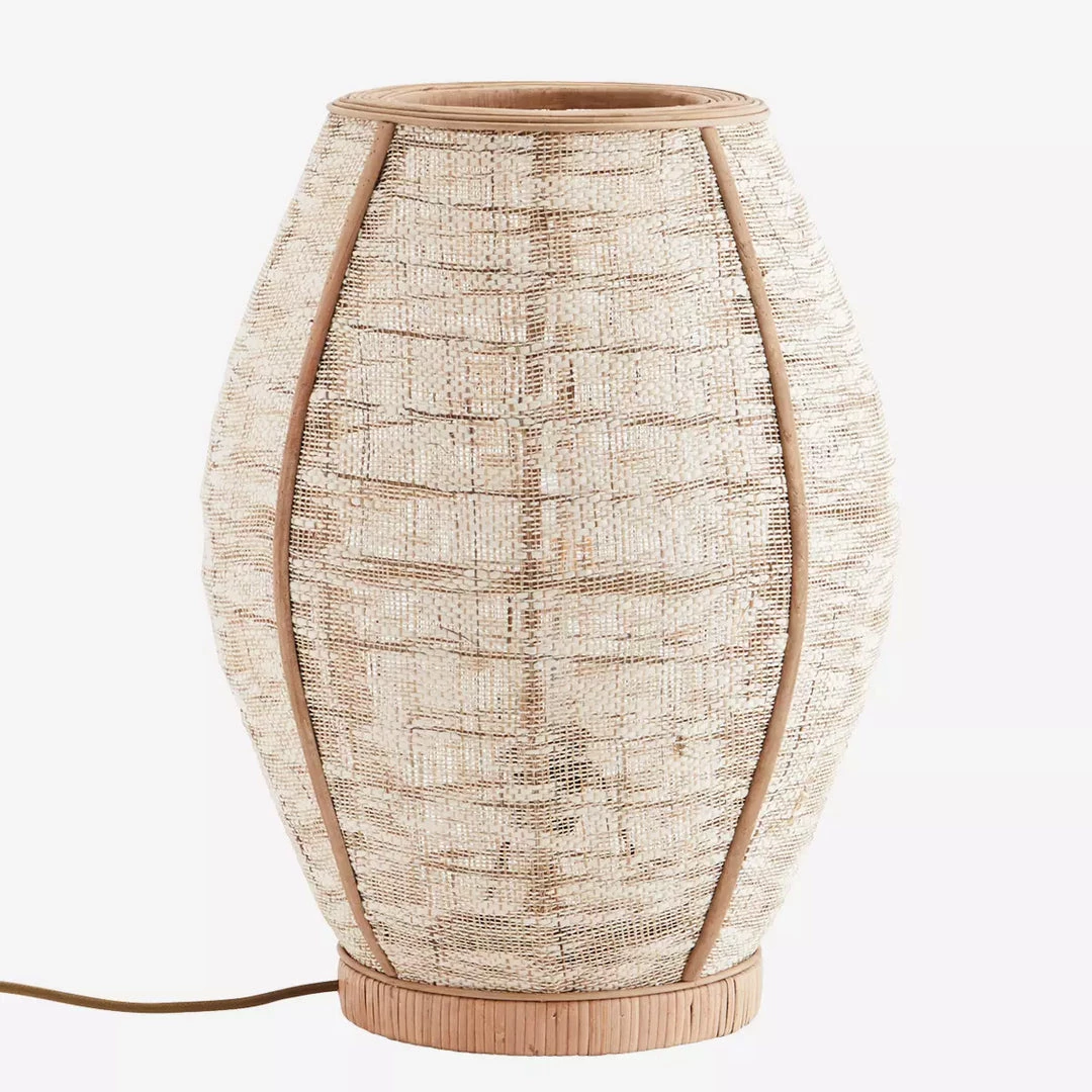 A stunning intricate bamboo and linen construction floor or table lamp is a great complement to any interior. This lamp will be perfect soft lighting for a living room or bedroom.