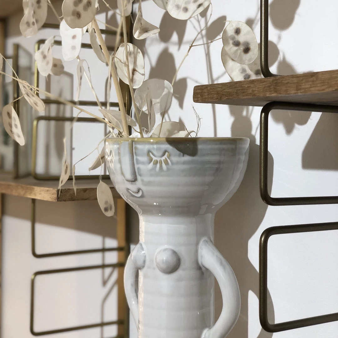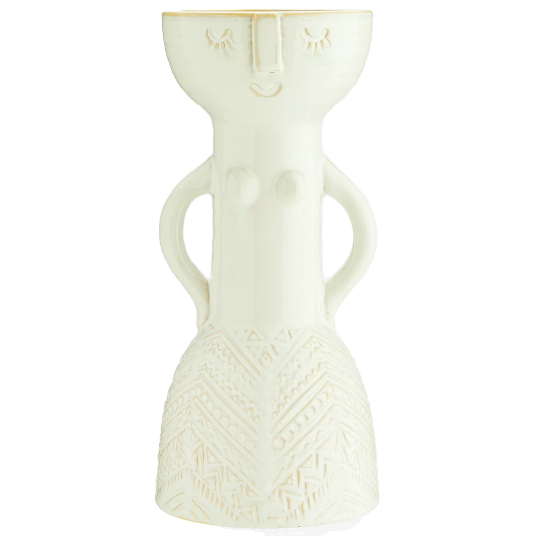 Decorate your home with this tall cool quirky stoneware vase, In a neutral off white colour and shaped like a woman/with a woman imprint by Madam Stoltz.