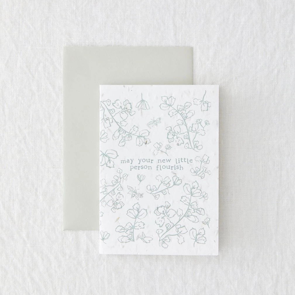 Message on the front- ‘May your new little person flourish’. Blank inside