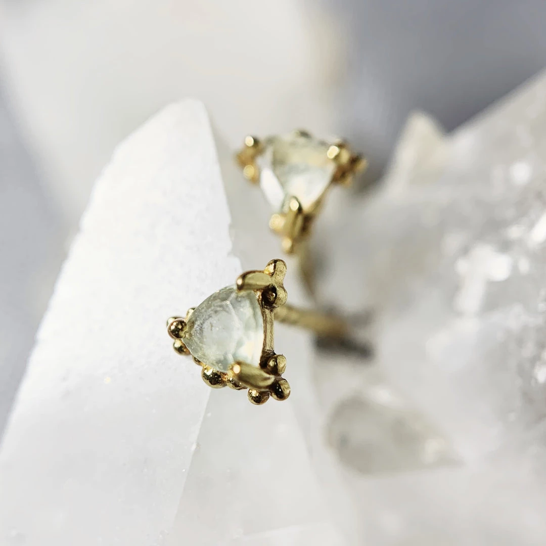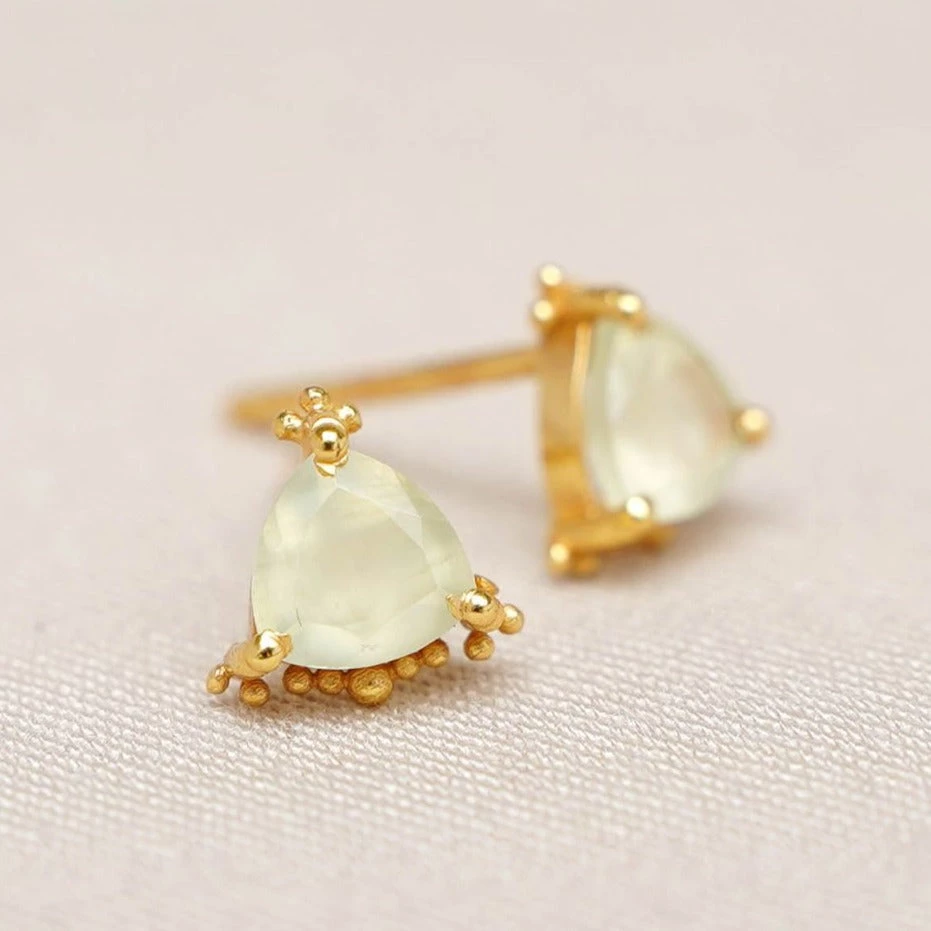 Beautiful handmade gold plated stud earrings with preunite stone and floral detail.