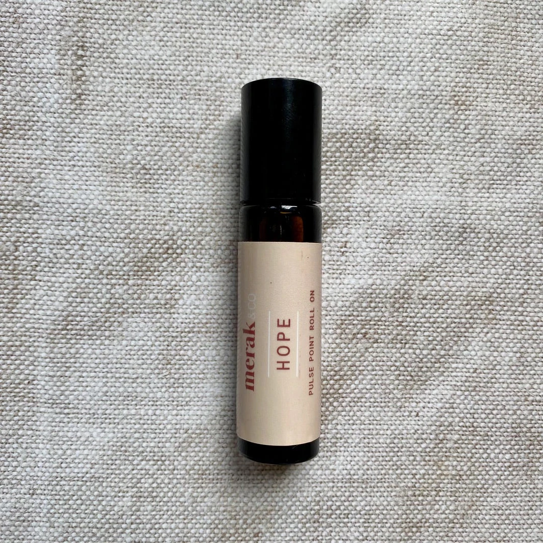 HOPE is a grounding, soothing blend of Patchouli, Frankincense, Clary Sage and Sweet Orange to bring clarity & peace.
