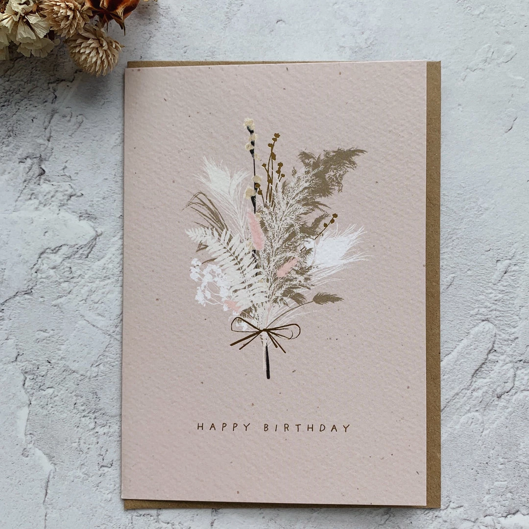 ‘Happy Birthday’ Birthday Dried Flower Bunch greetings card by Meraki