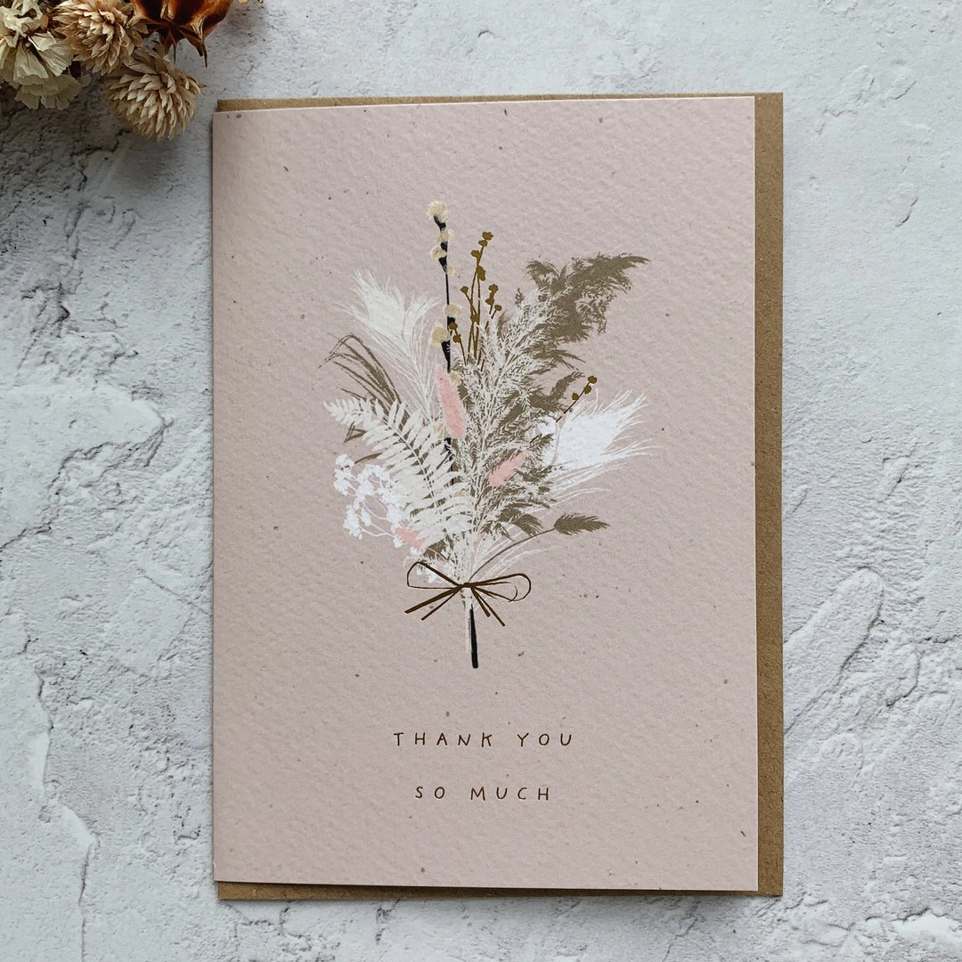‘Thank You So Much’ Dried Flower Bunch greetings card by Meraki