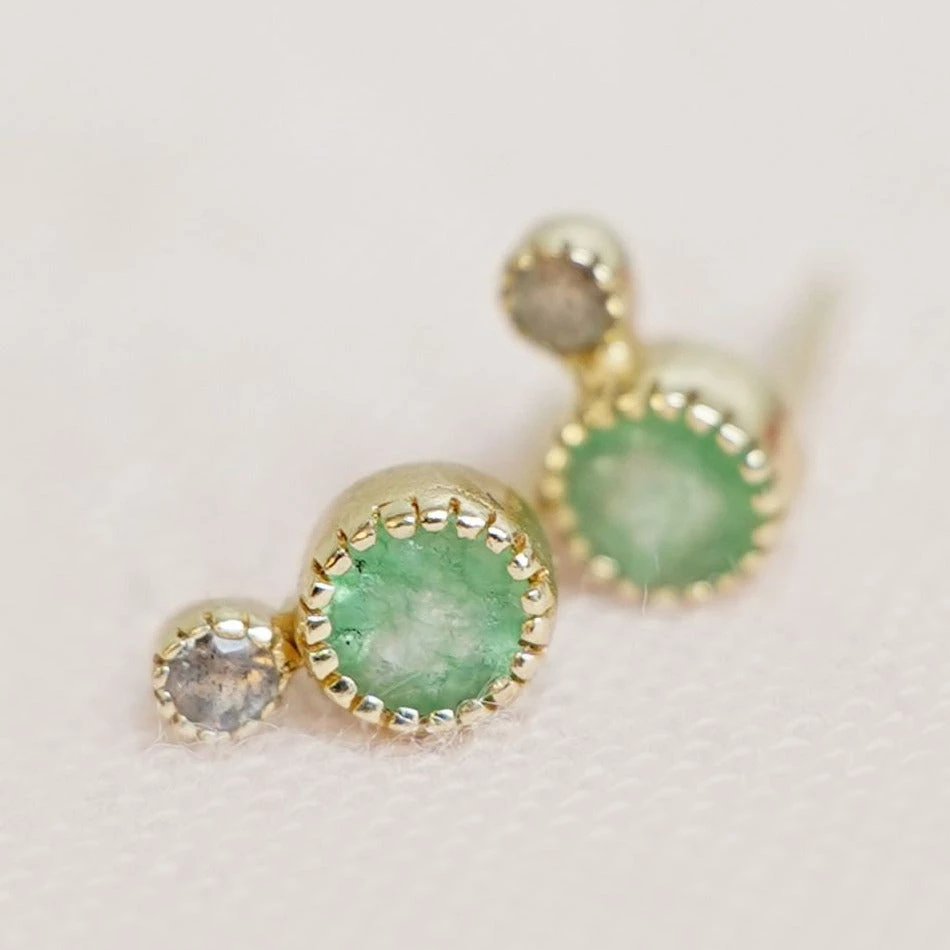 Beautiful handmade gold plated stud earrings with two stones labradorite and Nefrite.