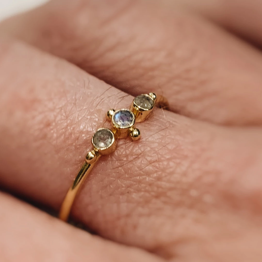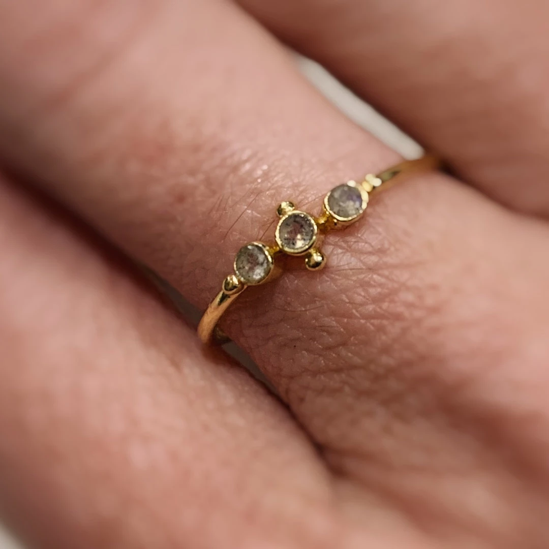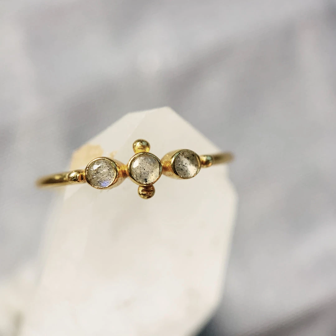 Beautiful handmade gold plated ring with 3 labradorite stones.
