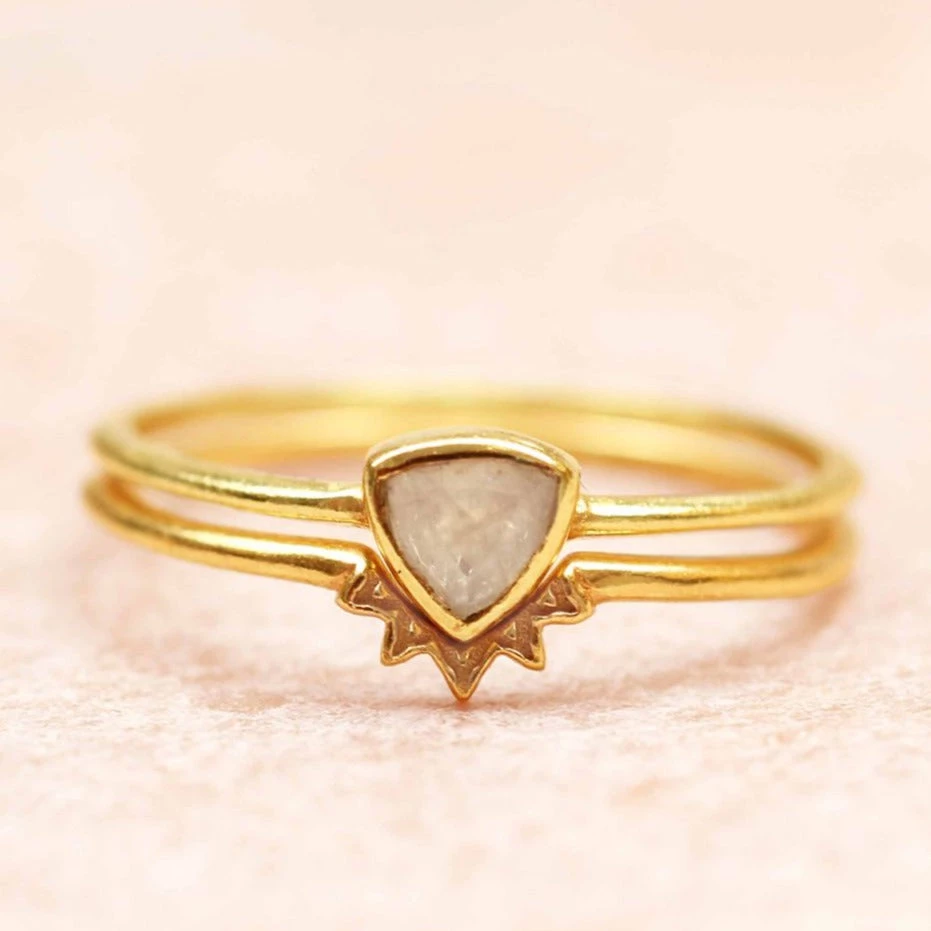 Beautiful handmade gold plated triangle moonstone ring, sold as a set but can be worn individually.