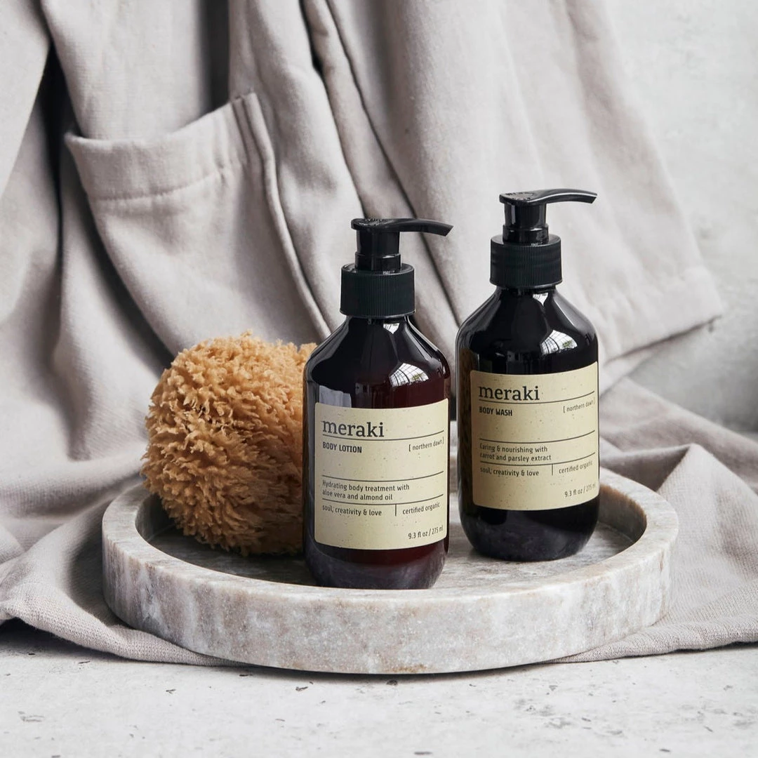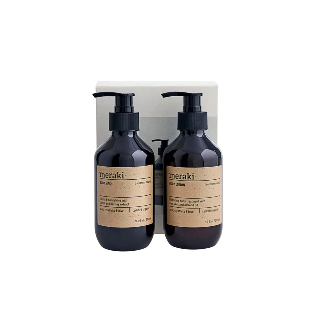 Giving a gift brings joy to both you and the recipient, regardless of the occasion. Surprise a loved one with this thoughtful giftbox from Meraki. It consists of a body wash and a body lotion with the popular Northern Dawn scent. Both are certified organic. The body wash nourishes and moisturises your skin with organic extracts from carrot and parsley. Finish your routine with the body lotion which softens and moisturises with almond oil and cocoa butter. Northern Dawn is a refreshing scent of fresh oranges, cedarwood and sweet balsamic.