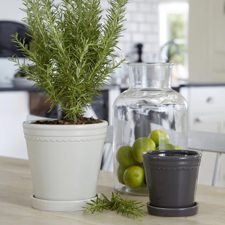 Glazed dolomite planters in a more traditional style with scalloped design and saucer to catch water. A lovely addition to your plant pot & houseplant collection.